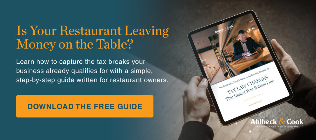 At Ahlbeck & Cook, we help restaurant owners turn financial data into strategic intelligence. Whether you’re refining a single location or scaling a multi-unit group, our team provides the industry-specific expertise to optimize performance and support sustainable growth.